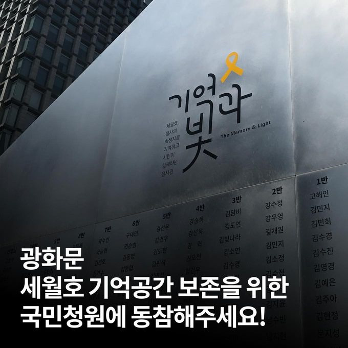광화문 세월호 기억공간 보존을 위한 청와대 국민청원이 올라왔습니다. 많은 관심과 참여 부탁드려요. 또 주변에도 널리 알려주세요. 고맙습니다.