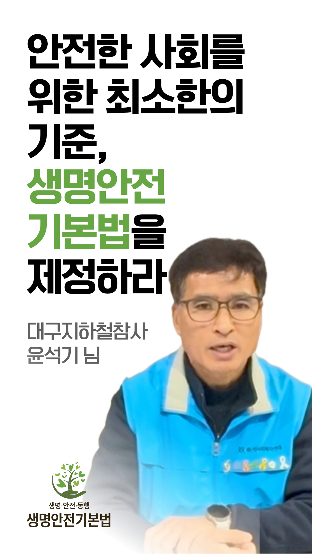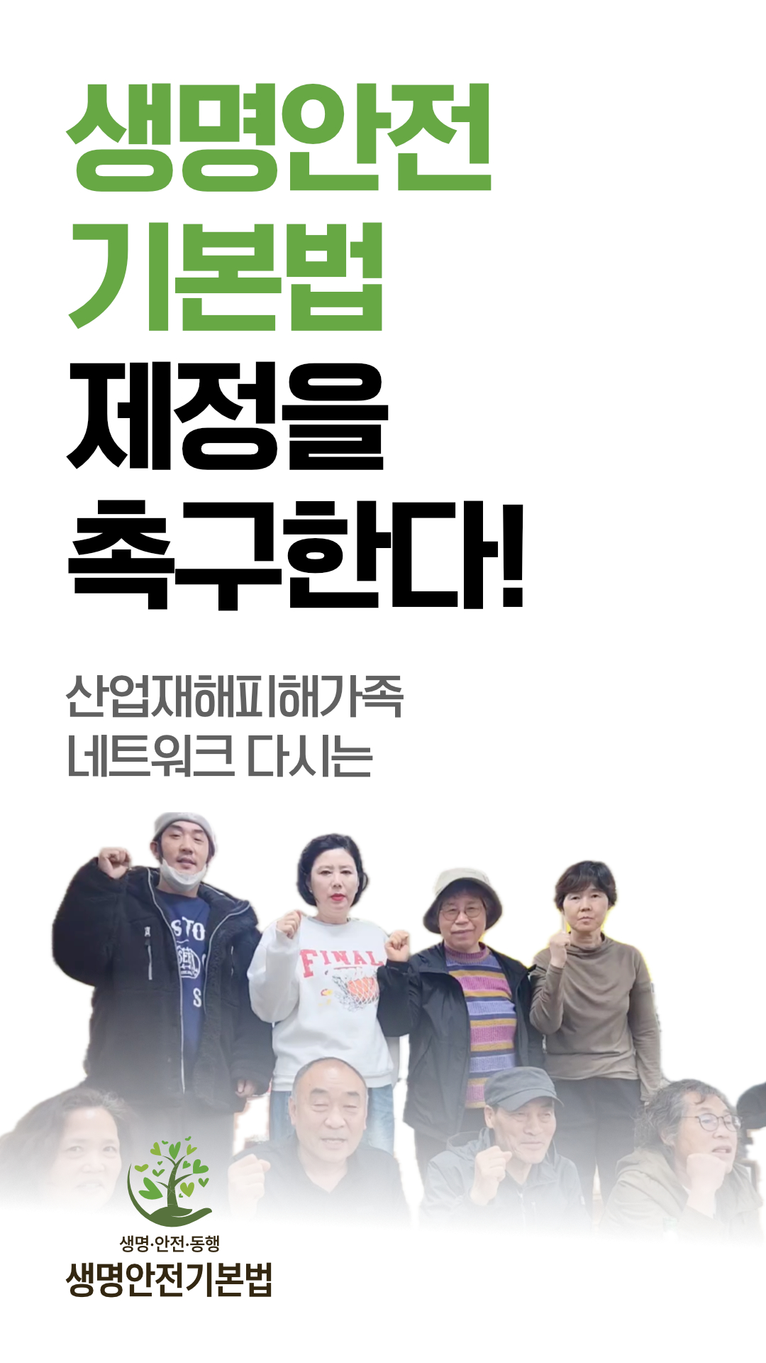 재난참사 피해자분들이 직접 요구하는, 생명안전기본법 제정 요구 릴레이 숏폼 영상, 영상편집과 섬네일 제작으로 참여했습니다.